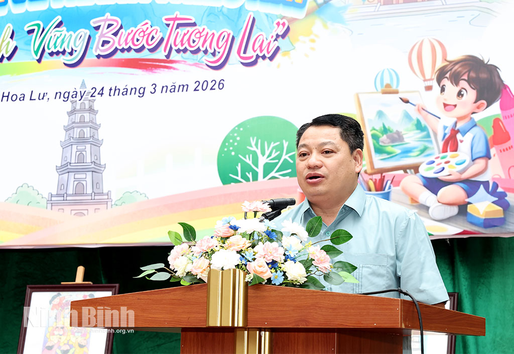 Ngày 24/3, tại Trường Tiểu học Lê Hồng Phong, phường Hoa Lư, Trung tâm Thanh thiếu nhi tỉnh tổ chức lễ phát động cuộc thi vẽ tranh thiếu nhi năm 2026 với chủ đề “Ninh Bình vững bước tương lai”. Đến dự có lãnh đạo Tỉnh đoàn; Hội đồng Đội tỉnh; lãnh đạo Trường Tiểu học Lê Hồng Phong.