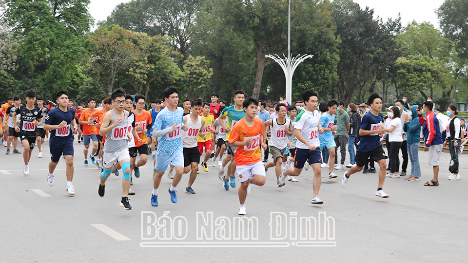 hào mừng 76 năm Ngày Thể thao Việt Nam (27-3-1946 - 27-3-2022), sáng 27-3, tại khu vực tiền sảnh Nhà Văn hóa 3-2 tỉnh, tượng đài Trần Hưng Đạo (thành phố Nam Ðịnh), Sở VH, TT và DL tổ chức Lễ phát động hưởng ứng cuộc vận động “Toàn dân rèn luyện thân thể theo gương Bác Hồ vĩ đại” và Giải Việt dã tỉnh năm 2022. Các đồng chí: Trần Lê Ðoài, TUV, Phó Chủ tịch UBND tỉnh; lãnh đạo một số sở, ban, ngành, đoàn thể, huyện, thành phố tới dự.