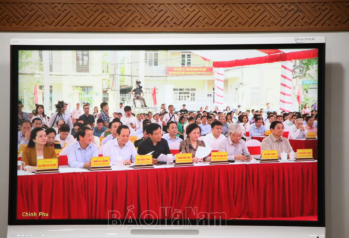 Tại điểm cầu tỉnh Hà Nam, dự buổi lễ có các đồng chí: Lê Thị Thủy, Ủy viên Trung ương Đảng, Bí thư Tỉnh ủy, Chủ tịch HĐND tỉnh; Trương Quốc Huy, Phó Bí thư Tỉnh ủy, Chủ tịch UBND tỉnh, Trưởng đoàn Đại biểu Quốc hội tỉnh; lãnh đạo các ban, sở, ngành, địa phương.