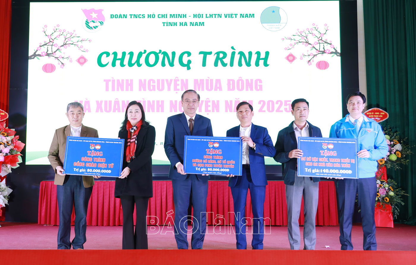 Tại chương trình, BTV Tỉnh đoàn, Ủy ban Hội LHTN tỉnh đã triển khai Chương trình Tình nguyện mùa Đông – Xuân tình nguyện 2025, phối hợp Mặt trận Tổ quốc tỉnh Khánh Hòa, Tỉnh đoàn Khánh Hòa, Công ty cổ phần Đầu tư phát triển Thành Đạt trao tặng các công trình, nguồn lực cho đại diện xã Liêm Sơn và Huyện đoàn Thanh Liêm gồm các công trình Thanh niên: “Cổng chào điện tử”, “Đường cờ Đảng, cờ Tổ Quốc và cụm pano tuyên truyền”, “Cơ sở vật chất, trang thiết bị cho 2 nhà văn hoá thôn”, “Đường cây thanh niên”; “Các điểm vui chơi cho thiếu nhi” và “Nguồn lực an sinh xã hội và khám bệnh, cấp phát thuốc miễn phí” với tổng kinh phí 600 triệu đồng.