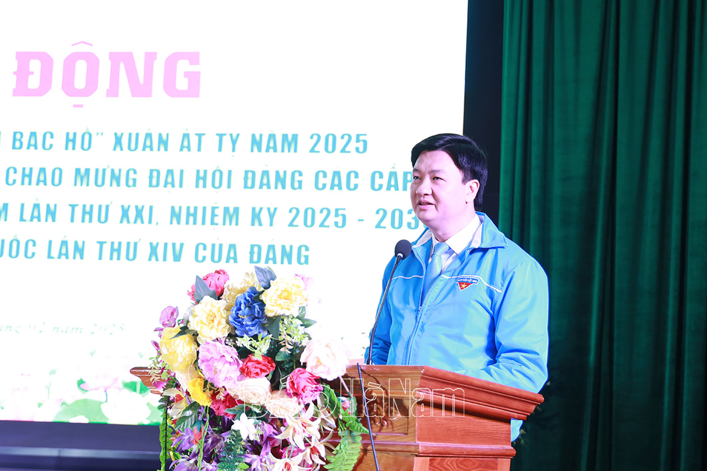 Sáng 5/2, tại Nhà văn hóa xã Liêm Sơn (Thanh Liêm), Đoàn Thanh niên cộng sản (TNCS) Hồ Chí Minh - Hội Liên hiệp Thanh niên (LHTN) Việt Nam tỉnh Hà Nam tổ chức phát động Tết trồng cây "Đời đời nhớ ơn Bác Hồ" Xuân Ất Tỵ và phát động phong trào thi đua chào mừng đại hội đảng bộ các cấp tiến tới Đại hội Đảng bộ tỉnh lần thứ XXI, nhiệm kỳ 2025 - 2030; Đại hội đại biểu toàn quốc lần thứ XIV của Đảng; triển khai Chương trình Tình nguyện mùa Đông – Xuân tình nguyện năm 2025.