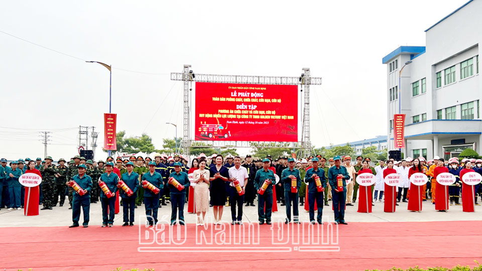 Ngày 12-10, tại Công ty TNHH Golden Victory Việt Nam, Cụm công nghiệp (CCN) Nghĩa Minh (Nghĩa Hưng), UBND tỉnh, Ban Chỉ đạo phòng cháy, chữa cháy và cứu nạn, cứu hộ (PCCC và CNCH) tỉnh đã tổ chức lễ phát động toàn dân PCCC và CNCH; diễn tập phương án chữa cháy và CNCH huy động nhiều lực lượng.
