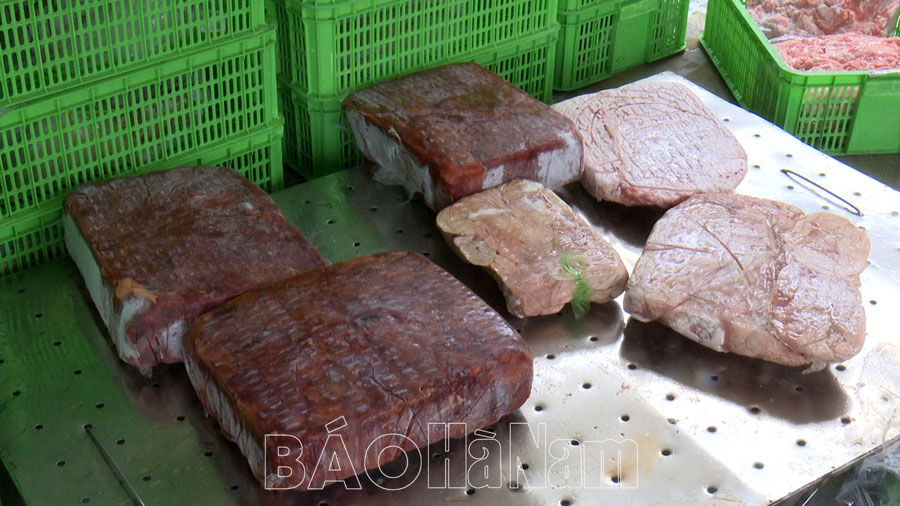 Sáng29/5, Đội 1, Chi cục Quản lý thị trường, Sở Công thương phối hợp với Đội 5, Phòng Cảnh sát điều tra tội phạm về tham nhũng kinh tế, buôn lậu, môi trường, Công an tỉnh tiến hành kiểm tra đột xuất hộ kinh doanh ông Lê Hồng Thoanh (thôn Bạc, xã Thanh Tân, huyện Thanh Liêm) phát hiện hơn 1,2 tấn nội tạng động vật không rõ nguồn gốc xuất xứ.