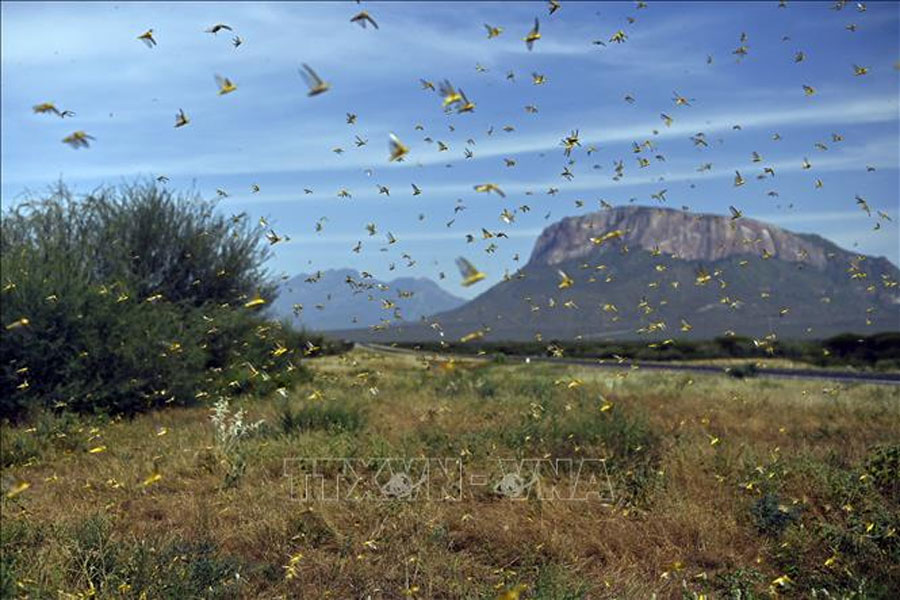 Một bầy châu chấu tại khu vực làng Lerata ở Samburu, Kenya. Ảnh: AFP/TTXVN