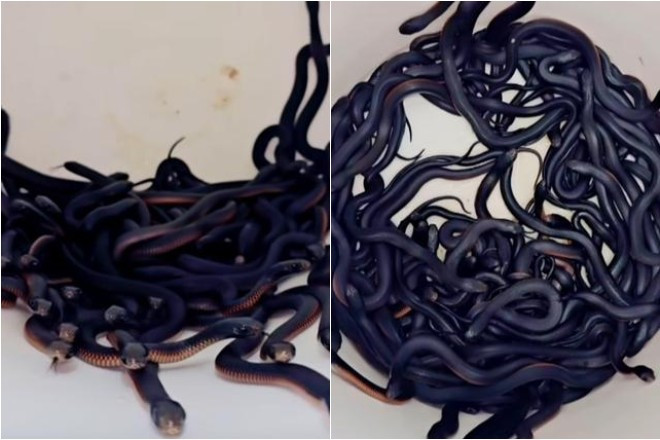 Anh cho biết vợ anh đã tìm hiểu và phát hiện những con rắn cái thường tụ tập khi sắp sinh con. Họ đoán sẽ còn nhiều con nữa trong ổ và cả những con sắp chào đời.