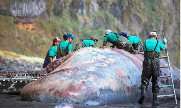 Các nhà khoa học nghiên cứu xác con cá nhà táng. Ảnh: Guardian
