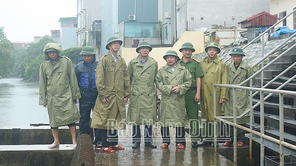 | Đồng chí Phạm Gia Túc, Ủy viên BCH Trung ương Đảng, Bí thư Tỉnh ủy kiểm tra, chỉ đạo công tác khắc phục úng ngập trên địa bàn thành phố Nam Định. |