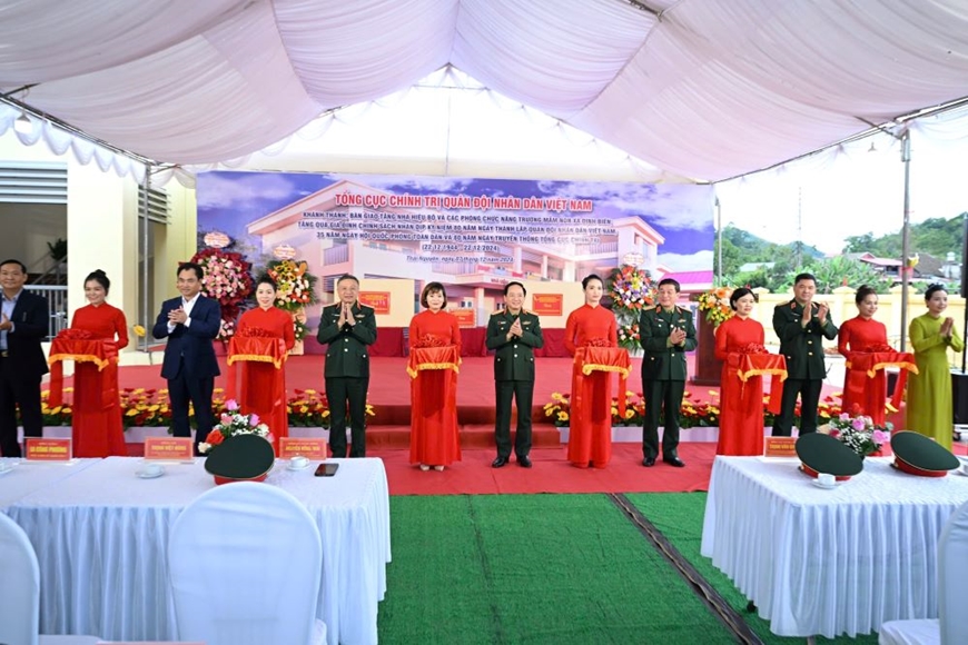 | Thượng tướng Trịnh Văn Quyết và các đại biểu cắt băng khánh thành Nhà hiệu bộ và các phòng chức năng của Trường Mầm non Định Biên, huyện Định Hóa, tỉnh Thái Nguyên ngày 7-12-2024 (công trình do Tổng cục Chính trị Quân đội nhân dân Việt Nam phê duyệt quyết định đầu tư, hỗ trợ kinh phí xây tặng). Ảnh: VIỆT TRUNG |
