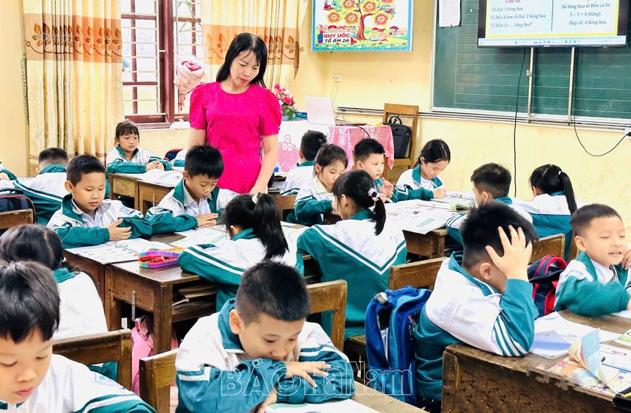 Cùng với đó, căn cứ hướng dẫn của Đảng ủy thị trấn Vĩnh Trụ, Chi bộ nhà trường định hướng cho CBĐV đăng ký và cam kết nội dung nêu gương phù hợp với cương vị công tác, nhiệm vụ được giao và báo cáo với Chi ủy nhà trường để được góp ý và giám sát thực hiện. Đặc biệt, cán bộ, người đứng đầu đơn vị luôn phát huy vai trò nêu gương trong thực hiện chức trách nhiệm vụ. Điển hình cô giáo Nguyễn Thị Bích Huệ, Bí thư Chi bộ, Hiệu trưởng nhà trường đã có nhiều hoạt động trong thực hiện các nhiệm vụ chuyên môn, phong trào thi đua yêu nước để cán bộ, giáo viên, học sinh noi theo. Cô giáo Nguyễn Thị Bích Huệ chia sẻ: Mỗi thầy cô giáo là một tấm gương sáng cho học sinh noi theo, vì thế cần phải làm gương ở mọi nơi mọi lúc, mọi công việc, tuyệt đối không chỉ làm theo phong trào hoặc chỉ đăng ký thi đua cho đủ hồ sơ, số lượng. Nhà trường luôn động viên, khuyến khích để phát huy cao độ vai trò tiên phong, gương mẫu của đội ngũ cán bộ, giáo viên là đảng viên trong thực hiện các nhiệm vụ giáo dục. Theo đó, giáo viên, nhất là giáo viên là đảng viên đã luôn nỗ lực ứng dụng phương pháp giảng dạy tiên tiến, tập trung đổi mới tổ chức hoạt động giáo dục và làm nòng cốt trong xây dựng kế hoạch nhà trường phù hợp yêu cầu của nhiệm vụ. Bên cạnh đó, nhà trường luôn tạo điều kiện để đội ngũ giáo viên trau dồi chuyên môn, tham gia học tập các lớp bồi dưỡng và giao lưu về chuyên môn.