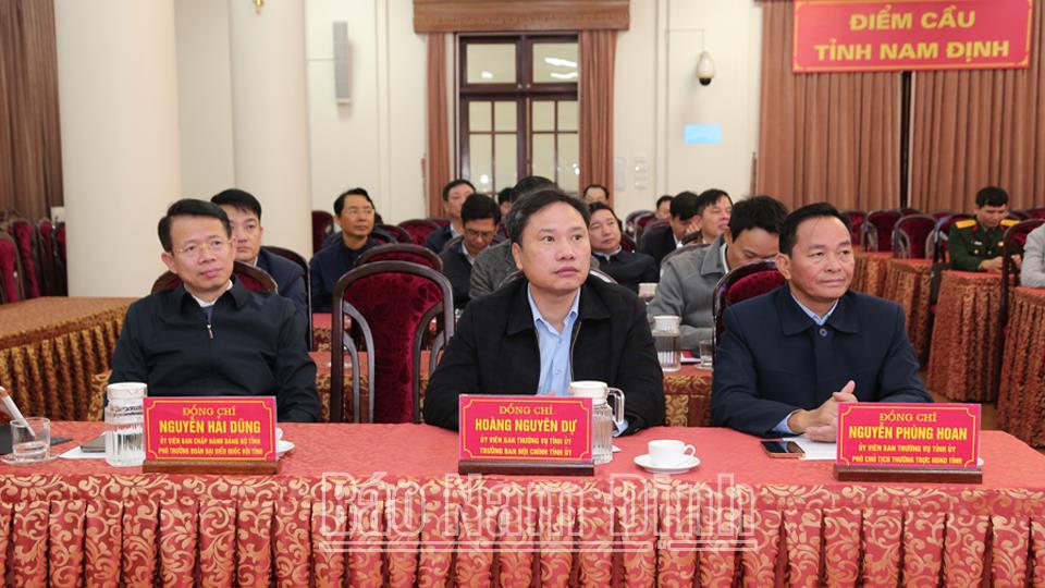 Tham dự hội nghị tại điểm cầu Nam Định có đồng chí Phạm Gia Túc, Ủy viên BCH Trung ương Đảng, Bí thư Tỉnh ủy; các đồng chí Ủy viên Ban TVTU; lãnh đạo HĐND, UBND tỉnh, Đoàn đại biểu Quốc hội tỉnh, các sở, ban, ngành, đoàn thể, cơ quan, đơn vị hữu quan của tỉnh.