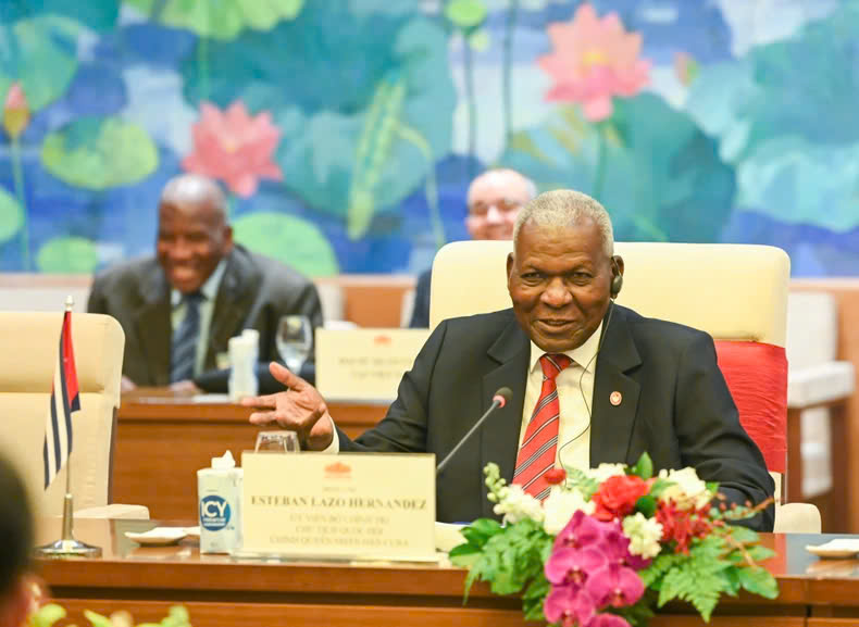 Chủ tịch Quốc hội Cuba Esteban Lazo Hernandez bày tỏ vui mừng, xúc động trở lại thăm đất nước Việt Nam anh hùng; nhấn mạnh, Việt Nam luôn là hình mẫu để Cuba học hỏi, mong muốn thúc đẩy mối quan hệ hai nước trên nhiều lĩnh vực như kinh tế, thương mại, y tế, nông nghiệp,…