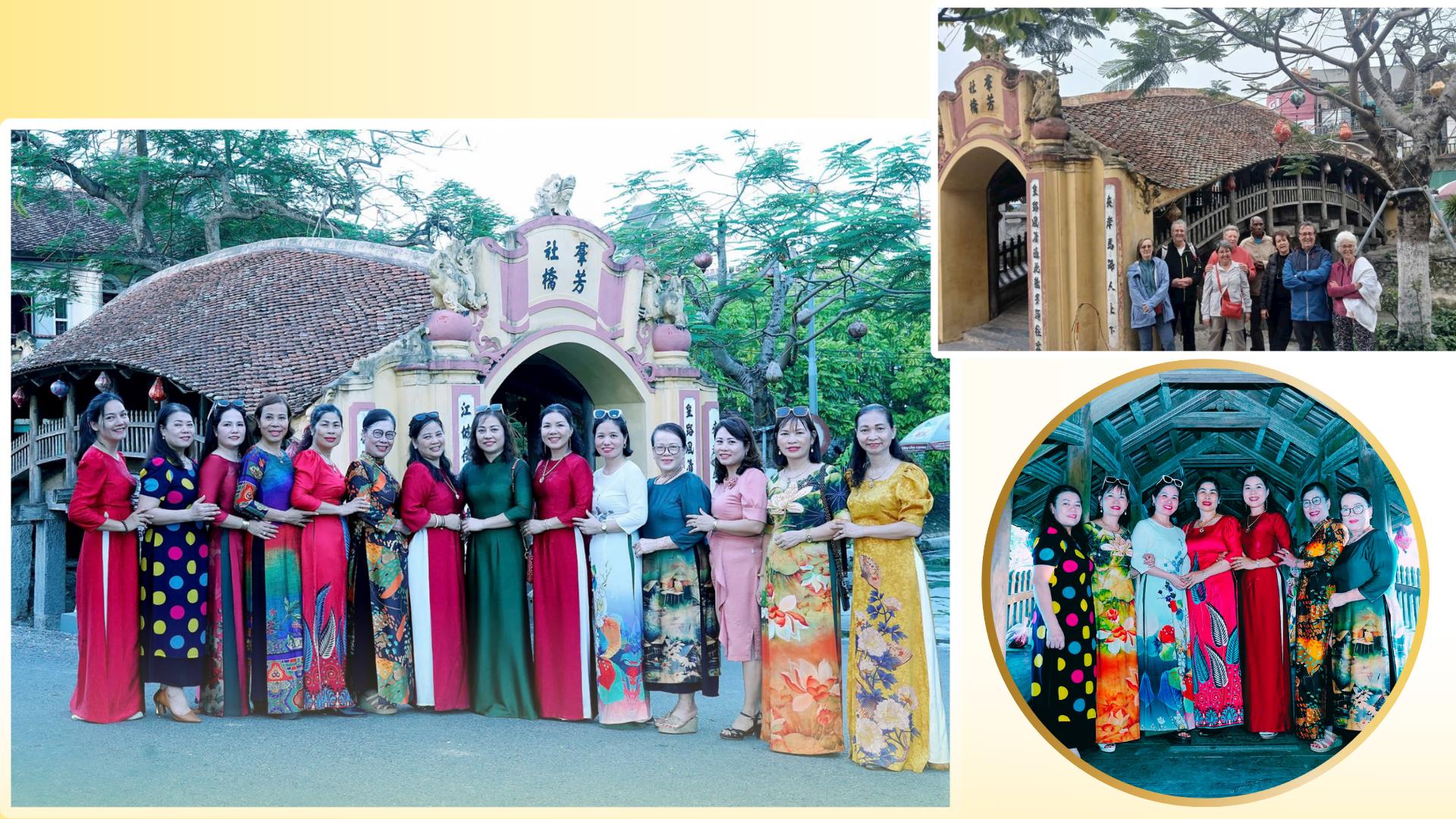 | Du khách tham quan, trải nghiệm tại cầu ngói Hải Anh. |