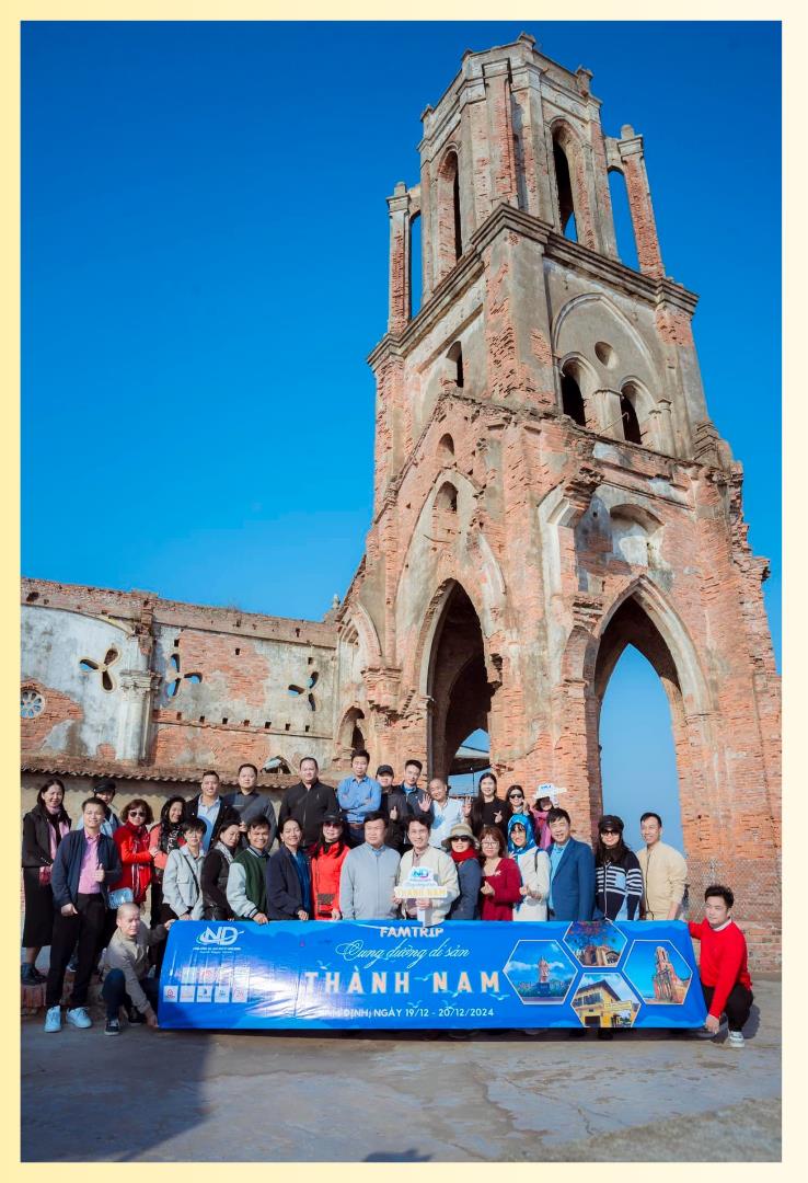 | Du khách tham gia tour du lịch tham quan tại Nhà thờ đổ. |