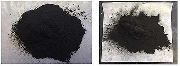 | Than sinh học từ bã cây cúc cao su (trái) và phế phẩm quả bông. (Ảnh: Đại học bang Pennsylvania). |