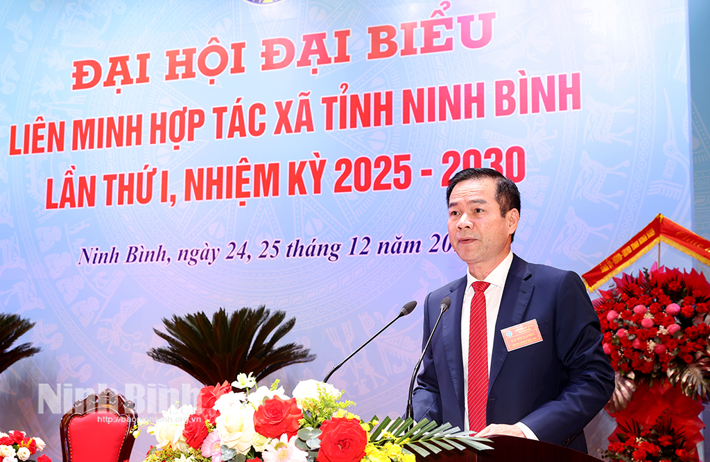 Chiều ngày 24/12, tại Nhà hát Phạm Thị Trân đã diễn ra phiên thứ nhất Đại hội đại biểu Liên minh Hợp tác xã (HTX) tỉnh Ninh Bình lần thứ I, nhiệm kỳ 2025 - 2030. Dự Đại hội có lãnh đạo các sở, ngành, Ủy ban MTTQ Việt Nam tỉnh, một số xã, phường và 368 đại biểu đại diện cho 1.390 HTX, Liên hiệp HTX, Quỹ tín dụng nhân dân trên địa bàn tỉnh.