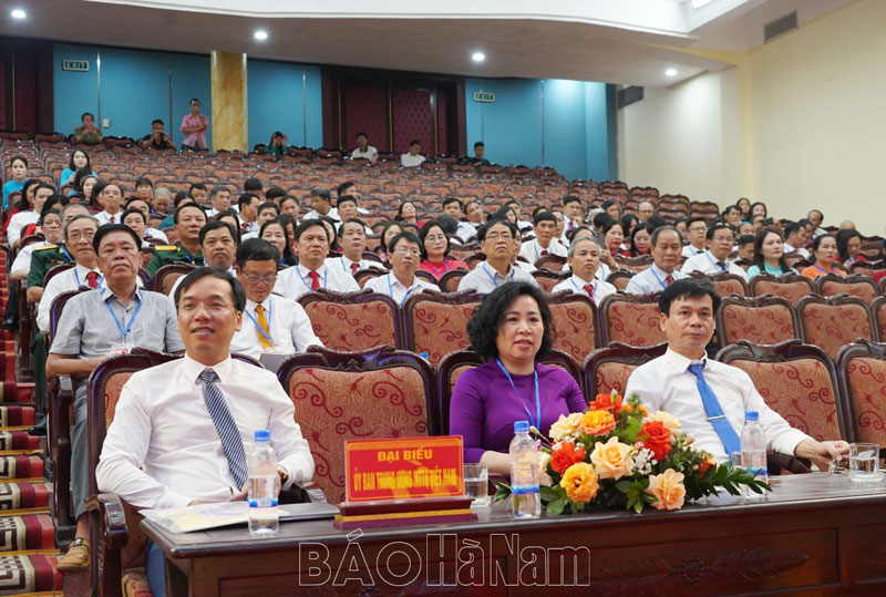 Trước khi tiến hành Đại hội, Đoàn đại biểu dự Đại hội đã dâng hoa, dâng hương tại Đền thờ các Anh hùng Liệt sỹ tỉnh Hà Nam.