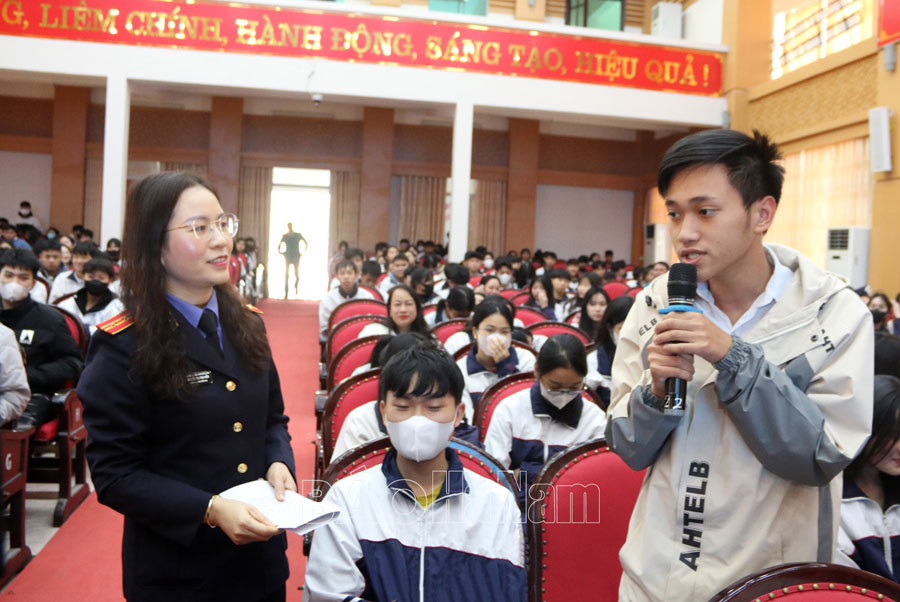Đại diện Viện Kiểm sát nhân dân thị xã Duy Tiên giao lưu, tuyên truyền, phổ biến pháp luật cho học sinh.