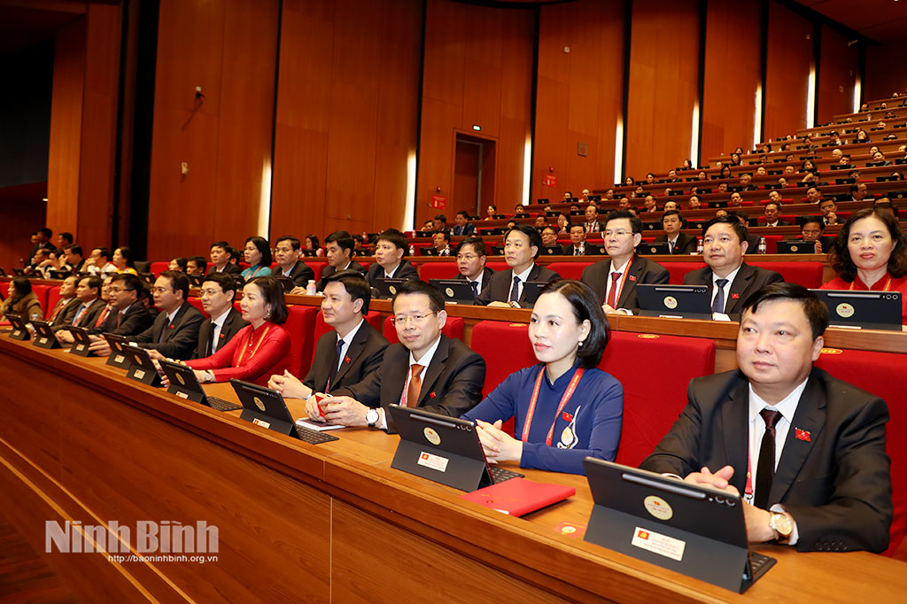 Đoàn đại biểu tỉnh Ninh Bình dự Đại hội gồm 56 đồng chí. Đồng chí Đặng Xuân Phong, Ủy viên Trung ương Đảng, Bí thư Tỉnh ủy, Trưởng đoàn ĐBQH tỉnh làm Trưởng đoàn. Tham gia Đoàn có các đồng chí: Đinh Thị Lụa, Phó Bí thư Thường trực Tỉnh ủy; Lê Quốc Chỉnh, Phó Bí thư Tỉnh ủy, Chủ tịch HĐND tỉnh; Trần Huy Tuấn, Phó Bí thư Tỉnh ủy, Chủ tịch UBND tỉnh; Mai Văn Tuất, Phó Bí thư Tỉnh ủy, Chủ tịch Ủy ban MTTQ Việt Nam tỉnh.