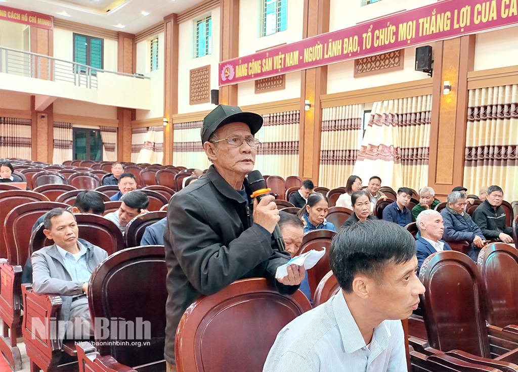 Cử tri cũng đề xuất một số ý kiến kiến nghị các đại biểu quan tâm đến việc đầu tư các công trình thủy lợi; nâng cao chất lượng xây dựng nông thôn mới; tu sửa nghĩa trang liệt sỹ xã; quan tâm chăm lo công tác giáo dục, đào tạo; vấn đề đầu tư công ...
