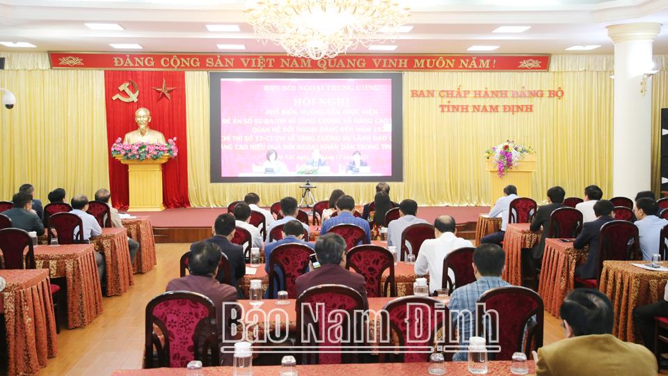 Tại hội nghị, lãnh đạo Ban Đối ngoại Trung ương đã triển khai đến các đại biểu những nội dung của Đề án 01 về tăng cường và nâng cao hiệu quả quan hệ đối ngoại đảng trong tình hình mới. Theo đó Đề án đã đề ra các biện pháp, mục tiêu cụ thể thể hiện quan điểm, phương châm cũng như các yêu cầu của Bộ Chính trị, Ban Bí thư liên quan đến công tác đối ngoại đảng với 5 giải pháp trọng tâm cho 5 nhóm cụ thể. Mục tiêu chung của Đề án 01 là nhằm nâng cao chất lượng, hiệu quả các mối quan hệ đối ngoại đảng và công tác đối ngoại đảng, phát huy thành tựu, kinh nghiệm, khắc phục hạn chế, tạo bước chuyển mạnh mẽ trong công tác đối ngoại đảng và quan hệ đối ngoại đảng. Việc thực hiện Đề án số 01 sẽ là ưu tiên hàng đầu của công tác đối ngoại đảng ở giai đoạn tiếp theo. Để thực hiện đề án này, Ban Đối ngoại Trung ương đề nghị các Tỉnh ủy, Thành ủy ban hành kế hoạch, chương trình hành động cụ thể, đồng thời quan tâm bố trí cán bộ tham mưu phụ trách công tác đối ngoại đảng cũng như duy trì chế độ thông tin định kỳ về công tác đối ngoại đảng.