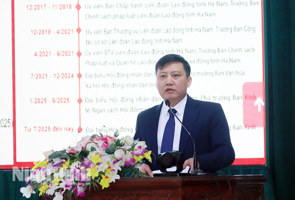 Đồng chí nhấn mạnh, bản thân sẽ quan tâm đến các nhóm vấn đề: Giải quyết những tồn tại trong lĩnh vực quản lý đất đai; an toàn vệ sinh thực phẩm; an toàn giao thông; tình trạng ô nhiễm môi trường; chống bạo lực phụ nữ và trẻ em; quan tâm đến công tác phòng chống tham nhũng; đề xuất, nghiên cứu các chế độ, chính sách cho cán bộ ở cơ sở khi xây dựng chính quyền địa phương 2 cấp; đóng góp tâm sức, trí tuệ cùng Đảng bộ, Chính quyền và Nhân dân trong tỉnh phấn đấu đến năm 2030 xây dựng tỉnh Ninh Bình trở thành thành phố trực thuộc Trung ương.