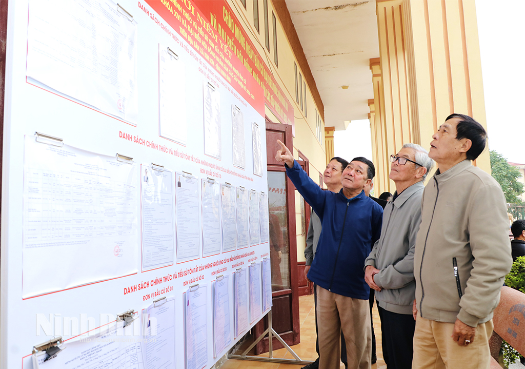 Các cử tri tìm hiểu thông tin về các ứng cử viên đại biểu Quốc hội, đại biểu HĐND các cấp, nhiệm kỳ 2026-2031 tại đơn vị bầu cử.