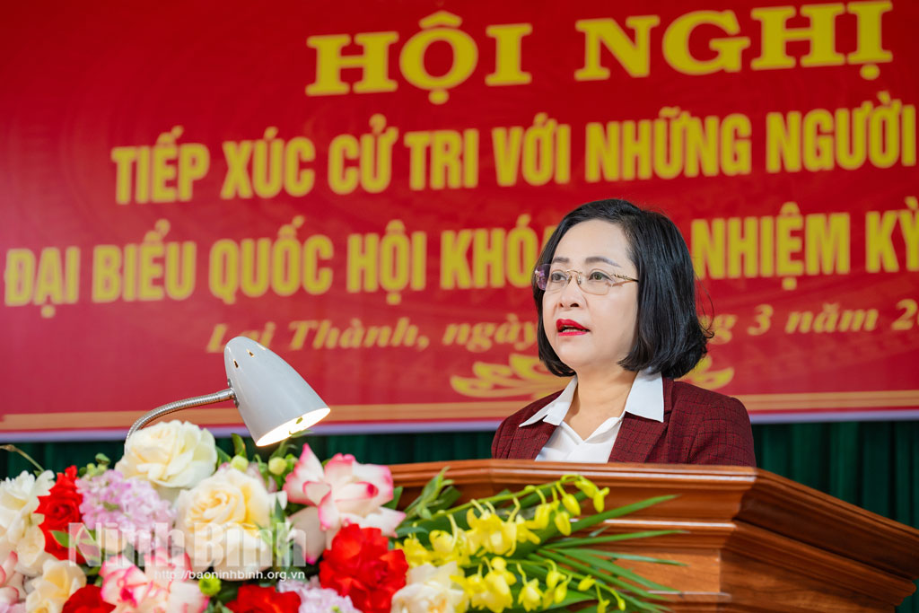 Phó Chủ tịch Quốc hội Nguyễn Thị Thanh và các ứng cử viên đại biểu Quốc hội khóa XVI tiếp xúc cử tri xã Phát Diệm, Lai Thành