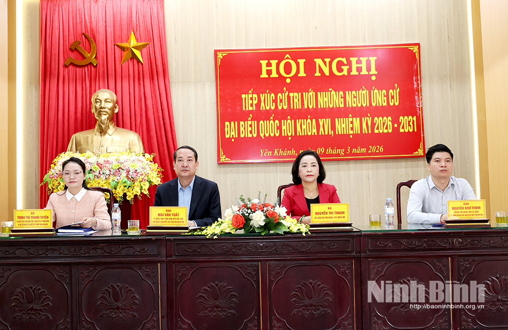 Sáng 9/3, Ban Thường trực Ủy ban MTTQ Việt Nam xã Yên Khánh tổ chức hội nghị để các ứng cử viên đại biểu Quốc hội khóa XVI tại Đơn vị bầu cử số 4 tiếp xúc cử tri xã Yên Khánh. Các đồng chí: Nguyễn Thị Thanh, Uỷ viên Trung ương Đảng, Phó Chủ tịch Quốc hội; Mai Văn Tuất, Phó Bí thư Tỉnh uỷ, Chủ tịch Uỷ ban MTTQ Việt Nam tỉnh cùng các ứng cử viên đại biểu Quốc hội khóa XVI dự hội nghị.