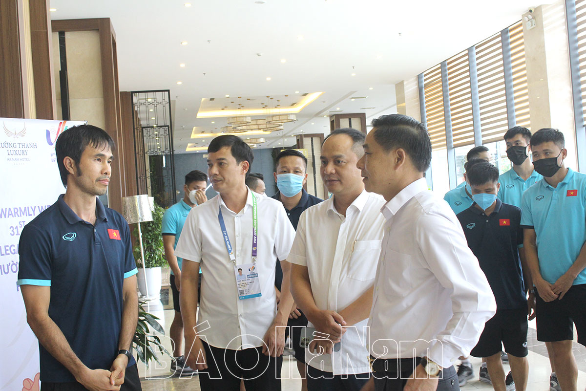 Phó Chủ tịch UBND tỉnh Nguyễn Anh Chức gặp gỡ Đoàn Futsal nam Việt Nam dự SEA Games 31 tại Hà Nam