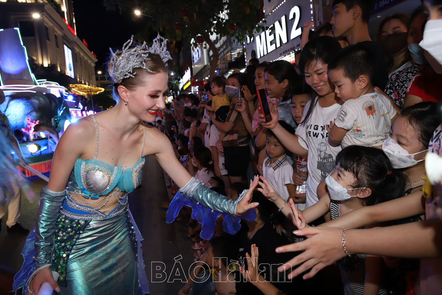Khi phố đi bộ được mở, nơi đây cũng trở thành một địa điểm sinh hoạt văn hóa, văn nghệ cộng đồng đúng nghĩa. Điều này rất quan trọng, vừa giúp cho phố đi bộ trở nên sôi động, hấp dẫn, ý nghĩa, đồng thời thúc đẩy phong trào văn nghệ quần chúng phát triển đúng theo tinh thần “người dân tự làm tự hưởng thụ”. Các đơn vị, tổ chức, hoặc nhóm, hội... đều tích cực tập luyện để có các tiết mục văn nghệ ưng ý nhất, sau đó đăng ký và ban tổ chức sẽ điều tiết để lên lịch bố trí biểu diễn tại phố đi bộ cho phù hợp. Các tiết mục văn nghệ khá đa dạng, có cả hát, khiêu vũ, dân vũ, biểu diễn thời trang... nhưng hầu hết đều có sự tham gia biểu diễn của nhiều người, ở nhiều độ tuổi. Các chị, các bà, các cô thường biểu diễn dân vũ, khiêu vũ thể thao, múa hát tập thể. Thanh niên có những màn nhảy sôi động khuấy động không khí, đúng với tinh thần tuổi trẻ. Trẻ em biểu diễn thời trang, khiêu vũ... Ngoài văn nghệ quần chúng còn có các buổi biểu diễn của những nghệ sỹ chuyên nghiệp về nghệ thuật truyền thống như: hát chèo, hát chầu văn. Các hoạt động trước đây được tổ chức ở không gian hẹp với số lượng người chứng kiến, thưởng thức vừa phải. Nay ở phố đi bộ, các hoạt động diễn ra ở không gian mở ngoài trời, với số lượng người thưởng thức đông, tạo sức lan tỏa lớn hơn rất nhiều. Đặc biệt phố đi bộ còn đón các nghệ sỹ quốc tế đến biểu diễn trong Carnaval Hà Nam 2022.