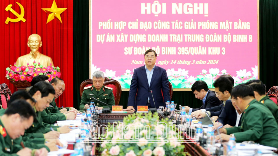 Phát biểu tại hội nghị, Trung tướng Nguyễn Quang Ngọc, Tư lệnh Quân khu 3 đánh giá cao sự vào cuộc tích cực, khẩn trương của tỉnh và huyện Nam Trực; sự đồng thuận của các cấp, các ngành và nhân dân địa phương trong thực hiện dự án. Đồng chí đề nghị tỉnh quan tâm các bước trong công tác GPMB theo đúng trình tự thời gian, quy định của pháp luật, từ việc rà soát, đo đạc, kiểm đếm cho đến việc công khai phương án GPMB đảm bảo quyền lợi cho nhân dân; khẩn trương triển khai các thủ tục GPMB 60ha đất tại xã Bình Minh, huyện Nam Trực đã có trong quy hoạch, kế hoạch sử dụng đất quốc phòng để sớm bàn giao cho Quân khu 3 trong quý 3/2024. Đồng thời sớm triển khai các thủ tục điều chỉnh bổ sung 40ha đất tại xã Bình Minh và xã Nam Tiến (huyện Nam Trực) vào quy hoạch, kế hoạch sử dụng đất quốc phòng của địa phương để đảm bảo đủ 100ha đất phục vụ dự án theo chủ trương đầu tư đã được Bộ phê duyệt. Trong quá trình triển khai thực hiện dự án, các cơ quan của Quân khu 3 sẽ tiếp tục phối hợp chặt chẽ với cấp ủy Đảng, chính quyền địa phương hoàn thiện các thủ tục, làm cơ sở để Quân khu báo cáo Bộ Quốc phòng.