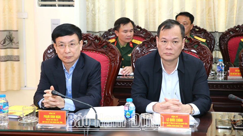 Tiếp và làm việc với đoàn về phía tỉnh có các đồng chí: Phạm Gia Túc, Ủy viên BCH Trung ương Đảng, Bí thư Tỉnh ủy, Bí thư Đảng ủy Quân sự tỉnh; Lê Quốc Chỉnh, Phó Bí thư Thường trực Tỉnh ủy, Chủ tịch HĐND tỉnh, Trưởng đoàn Đoàn đại biểu Quốc hội tỉnh; Phạm Đình Nghị, Phó Bí thư Tỉnh ủy, Chủ tịch UBND tỉnh; các đồng chí Ủy viên Ban TVTU: Trần Anh Dũng, Phó Chủ tịch Thường trực UBND tỉnh; Mai Văn Quyết, Giám đốc Sở Kế hoạch và Đầu tư; Đại tá Nguyễn Bá Thịnh, Chỉ huy trưởng Bộ CHQS tỉnh; lãnh đạo một số sở, ngành có liên quan của tỉnh và huyện Nam Trực...