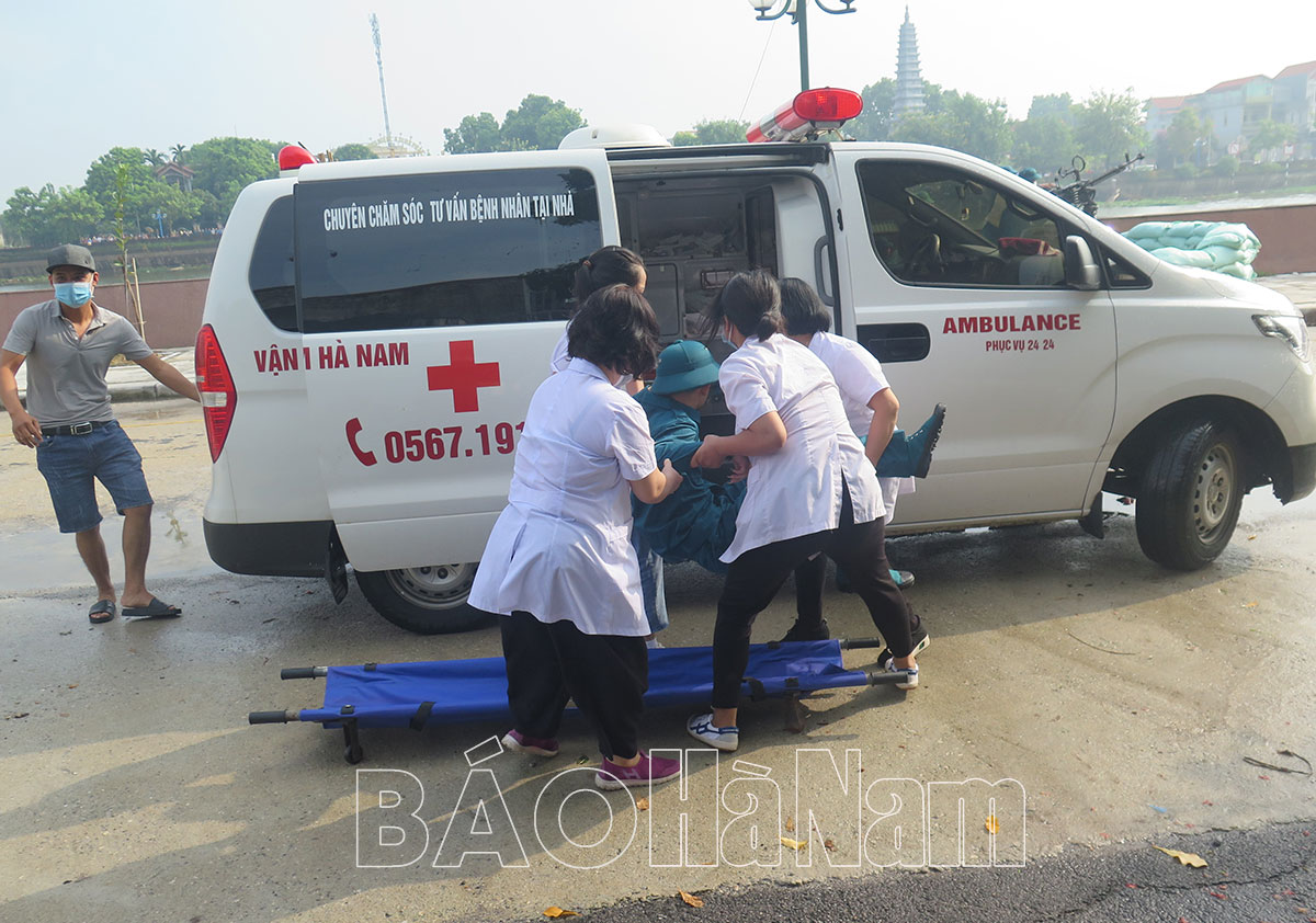 Lực lượng y tế diễn tập tham gia cấp cứu thương binh