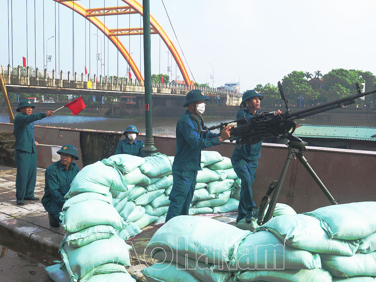 Sáng 23/9, 3 phường, xã (Minh Khai, Lương Khánh Thiện, Phù Vân) phối hợp tổ chức diễn tập thực binh tại khu vực cầu Châu Giang; bế mạc diễn tập chiến đấu trong khu vực phòng thủ (KVPT).