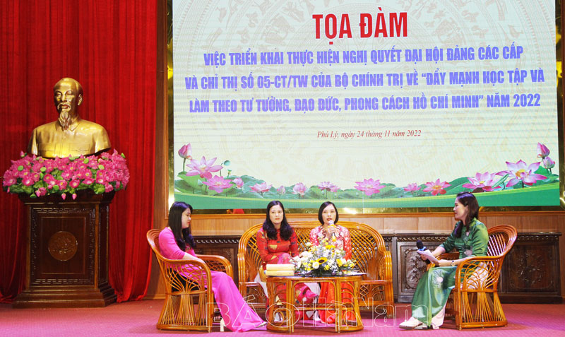 Chiều 24/11, Phòng GD&ĐT thành phố Phủ Lý đã tổ chức tọa đàm việc triển khai thực hiện Nghị quyết Đại hội Đảng các cấp và Chỉ thị 05 của Bộ chính trị về “Đẩy mạnh học tập và làm theo tư tưởng, đạo đức, phong cách Hồ Chí Minh” năm 2022. Dự tọa đàm có lãnh đạo Thành ủy, UBND thành phố và đông đảo cán bộ, đảng viên, giáo viên ngành giáo dục.