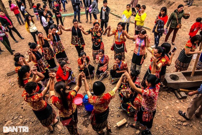Sau khi cúng xong, tất cả phải để nguyên trên bàn thờ không được ăn mà chỉ bê mâm đã chế biến các món lòng, chả nướng, thịt tái, thịt luộc... từ bếp lên mời khách. Cứ như vậy, bữa trưa nhà này mời thì bữa tối và hôm sau lại nhà khác mời đến uống rượu ăn Tết, vui Xuân mới.