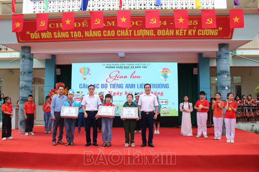 Sáng 26/4, tại Trường Tiểu học Trần Quốc Toản, Phòng Giáo dục và Đào tạo (GD&ĐT) thành phố Phủ Lý tổ chức Giao lưu Câu lạc bộ tiếng Anh liên trường, cụm chuyên môn số 2 năm học 2024 – 2025 với chủ đề “Ngày hội toàn thắng”.