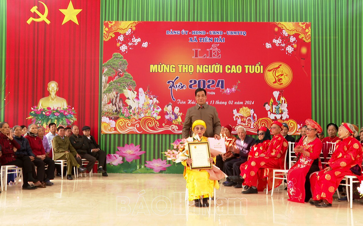 Trong các ngày mùng 4, mùng 5 và mùng 6 Tết Giáp Thìn, Đảng ủy-HĐND- UBND và Hội Người cao tuổi các phường, xã trên địa bàn thành phố Phủ Lý tổ chức lễ mừng thọ người cao tuổi cho các cụ tuổi tròn 70, 75, 80, 85, 90, 95, 100 và trên 100 tuổi.