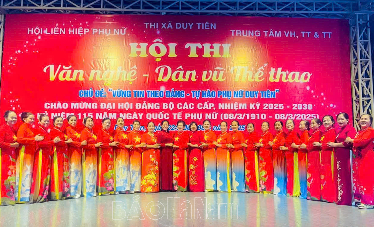 Cán bộ, công chức Hội Liên hiệp Phụ nữ tỉnh mặc áo dài trong tuần làm việc đầu tiên của tháng 3.Màn trình diễn áo dài “Hà Nam quê hương tôi” và “Lung linh sắc hoa” nhằm tôn vinh giá trị áo dài, nét đẹp duyên dáng, thanh lịch của phụ nữ Việt Nam nói chung, phụ nữ Hà Nam nói riêng.Tiết mục đồng diễn dân vũ ấn tượng của hơn 1.000 cán bộ, hội viên phụ nữ hưởng ứng "Tuần lễ áo dài" năm 2024 tại phố đi bộ thành phố Phủ Lý.Cán bộ, hội viên Hội Liên hiệp Phụ nữ huyện Thanh Liêm duyên dáng trong trang phục áo dài truyền thống khi đến nơi công sở.Phụ nữ Duy Tiên hưởng ứng với chương trình Hội thi Văn nghệ - Dân vũ thể thao với chủ đề "Vững tin theo Đảng - Tự hào phụ nữ Duy Tiên".Hội Phụ nữ xã Công Lý (Lý Nhân) tổ chức chương trình nghệ thuật hưởng ứng tuần lễ Áo dài năm 2025.Ban Thường vụ Hội LHPN huyện Lý Nhân tổ chức Hội nghị Ký giao ước thi đua năm 2025 giữa Hội LHPN các xã, thị trấn, Hội Phụ nữ Công an huyện với Hội LHPN huyện phát động đợt thi đua đặc biệt hướng ứng Tuần lễ Áo dài năm 2025.Phụ nữ Kim Bảng tập luyện dân vũ với áo dài truyền thống.