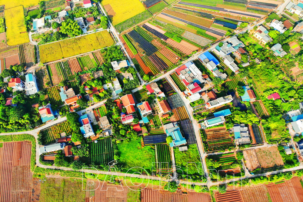 Làng hoa Phù Vân nhìn từ trên cao xuống, vào thời điểm này các cánh đồng cũng như nhà vườn được phủ 1 màu xanh của các loại hoa, cây cảnh chuẩn bị cho dịp Tết.
