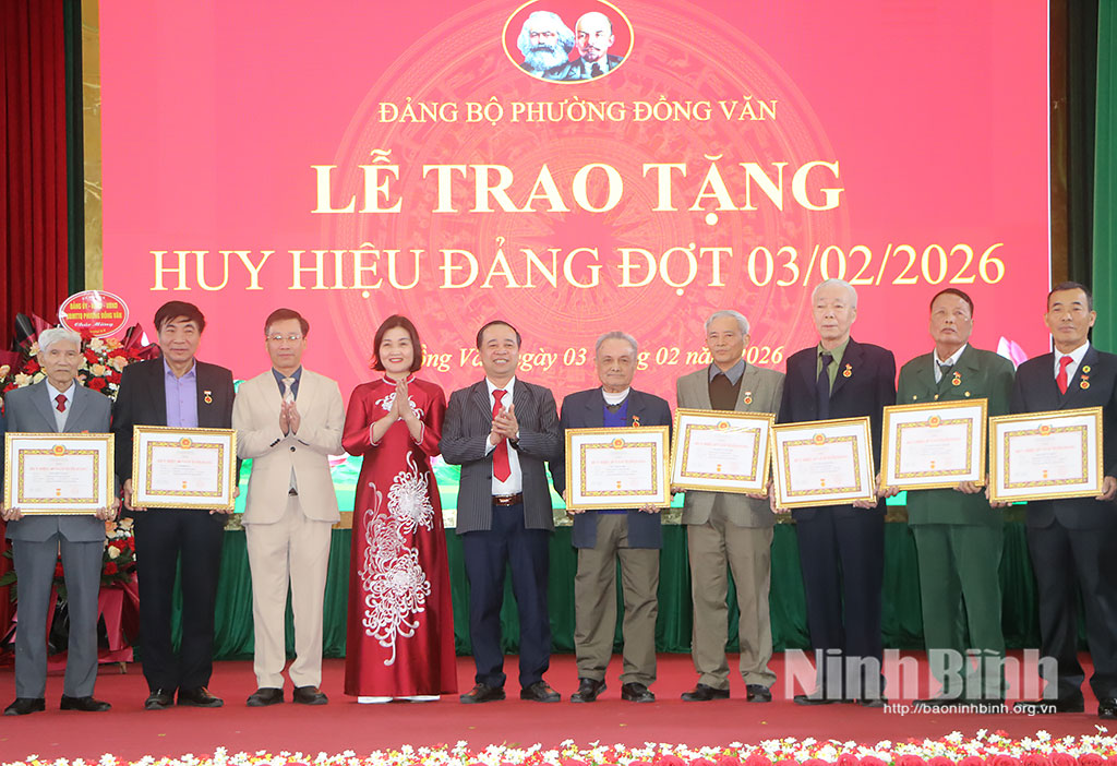Chiều 3/2, tại Nhà văn hóa phường, Đảng ủy, HĐND, UBND phường Đồng Văn tổ chức hội nghị tổng kết phong trào thi đua yêu nước năm 2025, phát động phong trào thi đua yêu nước năm 2026 và trao tặng Huy hiệu Đảng đợt 3/2.