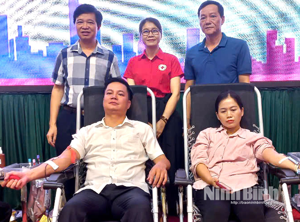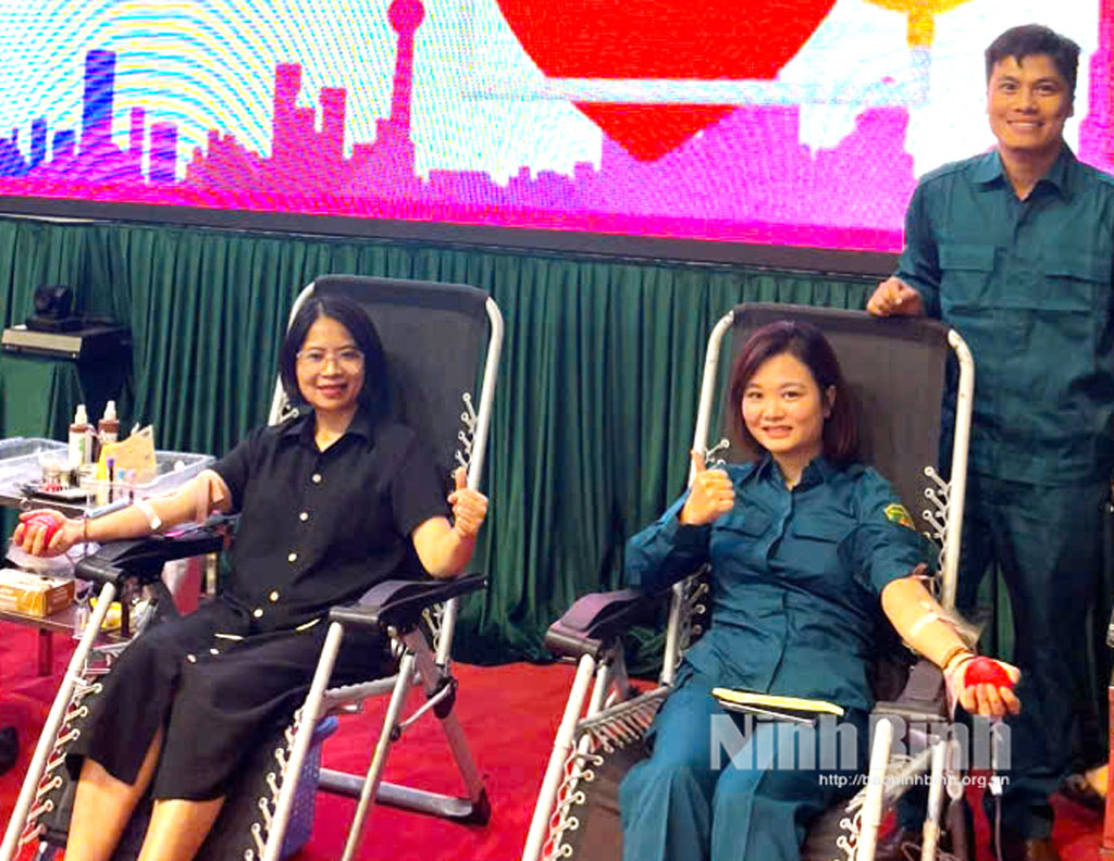 Đồng chí Ngô Thị Hương Lan, Bí thư Đảng ủy phường Duy Hà (người mặc áo đen) tham gia hiến máu.Đồng chí Nguyễn Như Uy, Chủ tịch UBND phường Duy Hà (người mặc áo trắng) tham gia hiến máu tình nguyện.