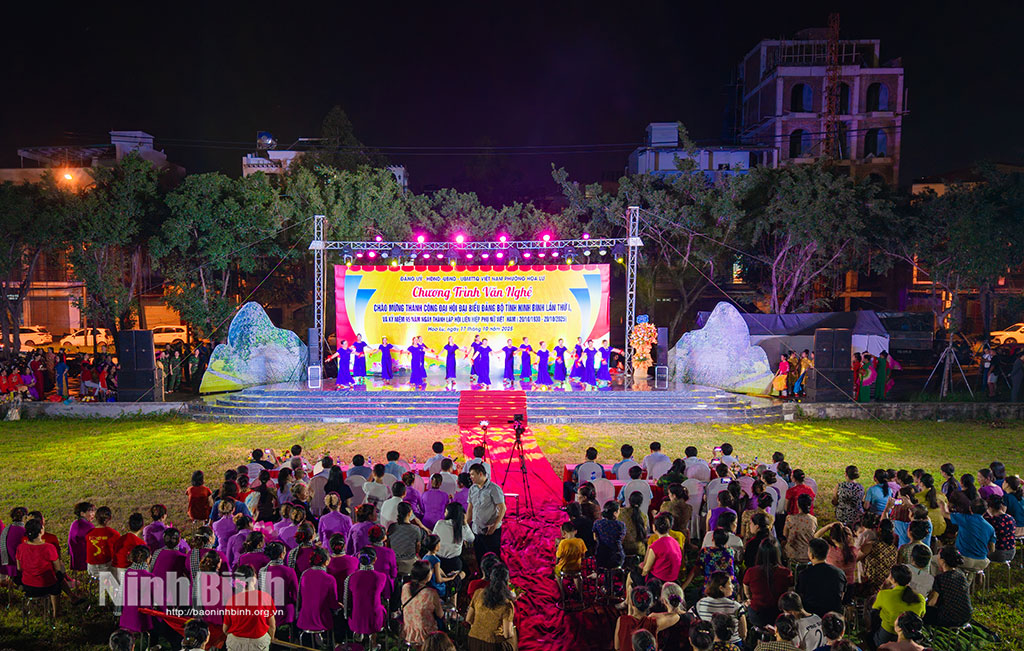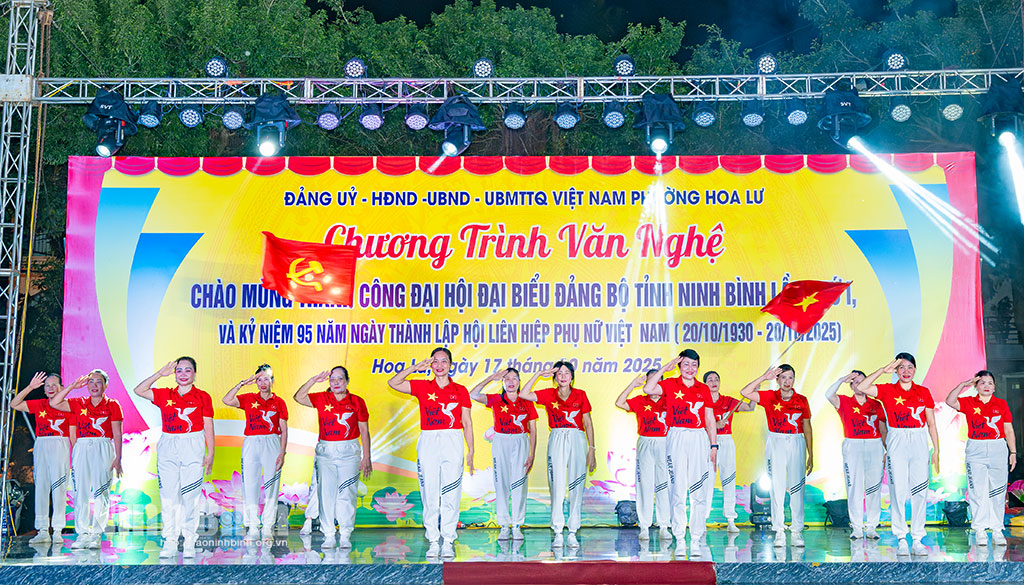 Tối 17/10, tại Sân thể thao công cộng phường Hoa Lư, Đảng ủy- HĐND - UBND - Ủy ban MTTQ Việt Nam phường Hoa Lư tổ chức Chương trình văn nghệ chào mừng thành công Đại hội đại biểu Đảng bộ tỉnh Ninh Bình lần thứ I, nhiệm kỳ 2025-2030 và kỷ niệm 95 năm Ngày thành lập Hội Liên hiệp Phụ nữ Việt Nam. Đến dự có lãnh đạo Ban Tuyên giáo và Dân vận Tỉnh ủy; đại diện Trung tâm văn hóa tỉnh; lãnh đạo phường Hoa Lư…