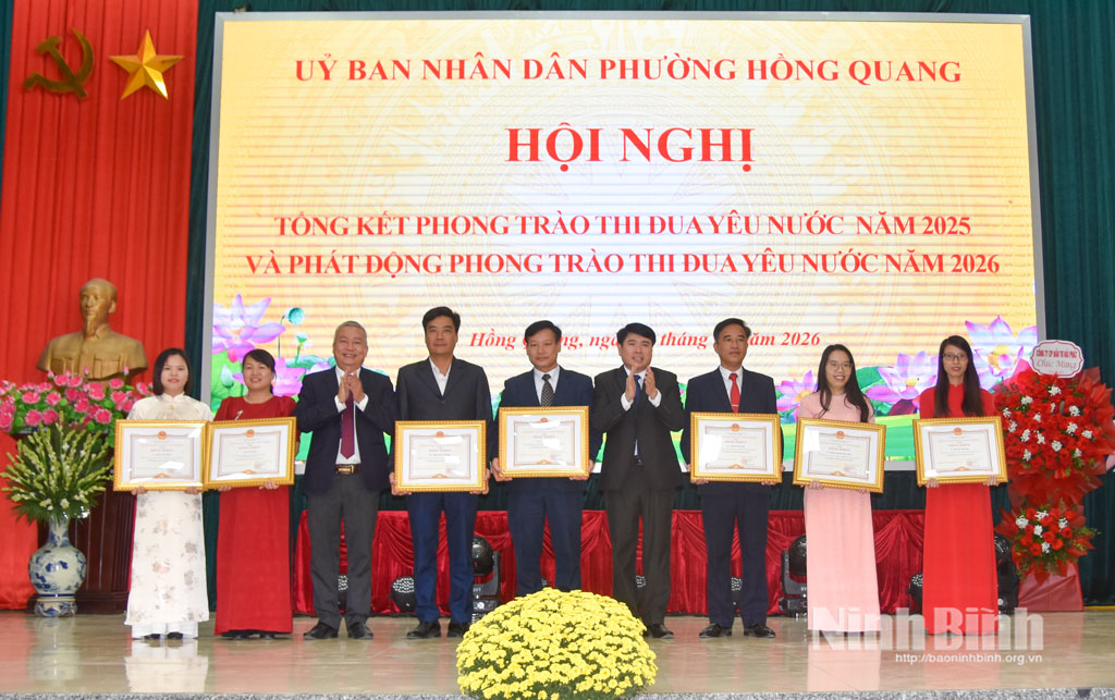 Chiều 6/2, UBND phường Hồng Quang, UBND xã Bình Giang tổ chức hội nghị tổng kết phong trào thi đua yêu nước năm 2025, phát động phong trào thi đua yêu nước năm 2026.
