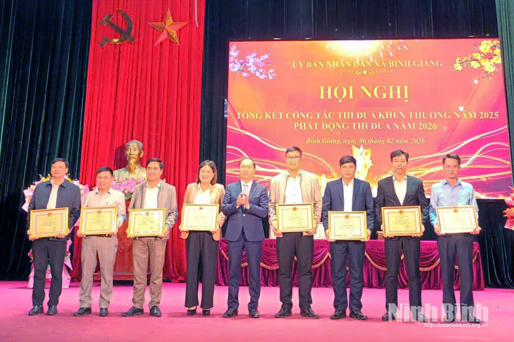 Lãnh đạo xã Bình Giang trao Giấy khen cho các tập thể có thành tích xuất sắc trong năm 2025.