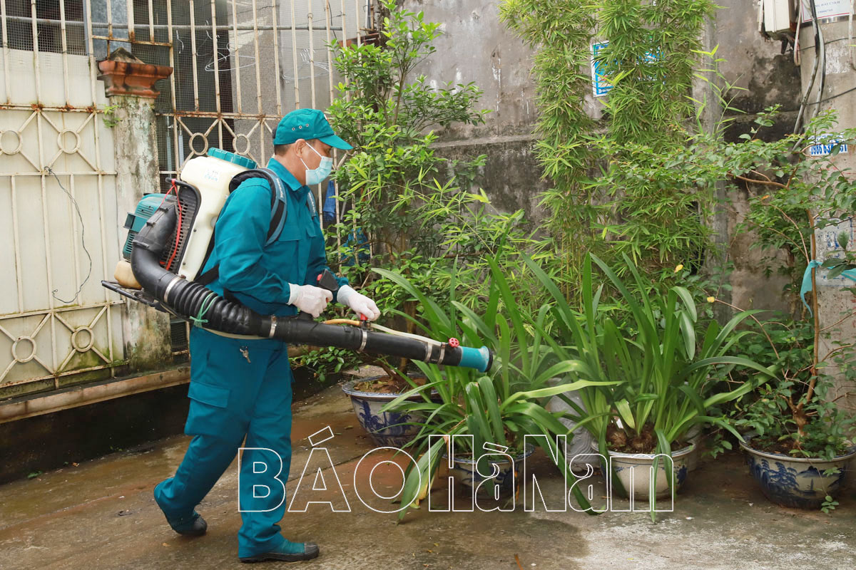 Phun thuốc diệt muỗi để phòng ngừa dịch bệnh sốt xuất huyết tại phường Lương Khánh Thiện ( Phủ Lý).
