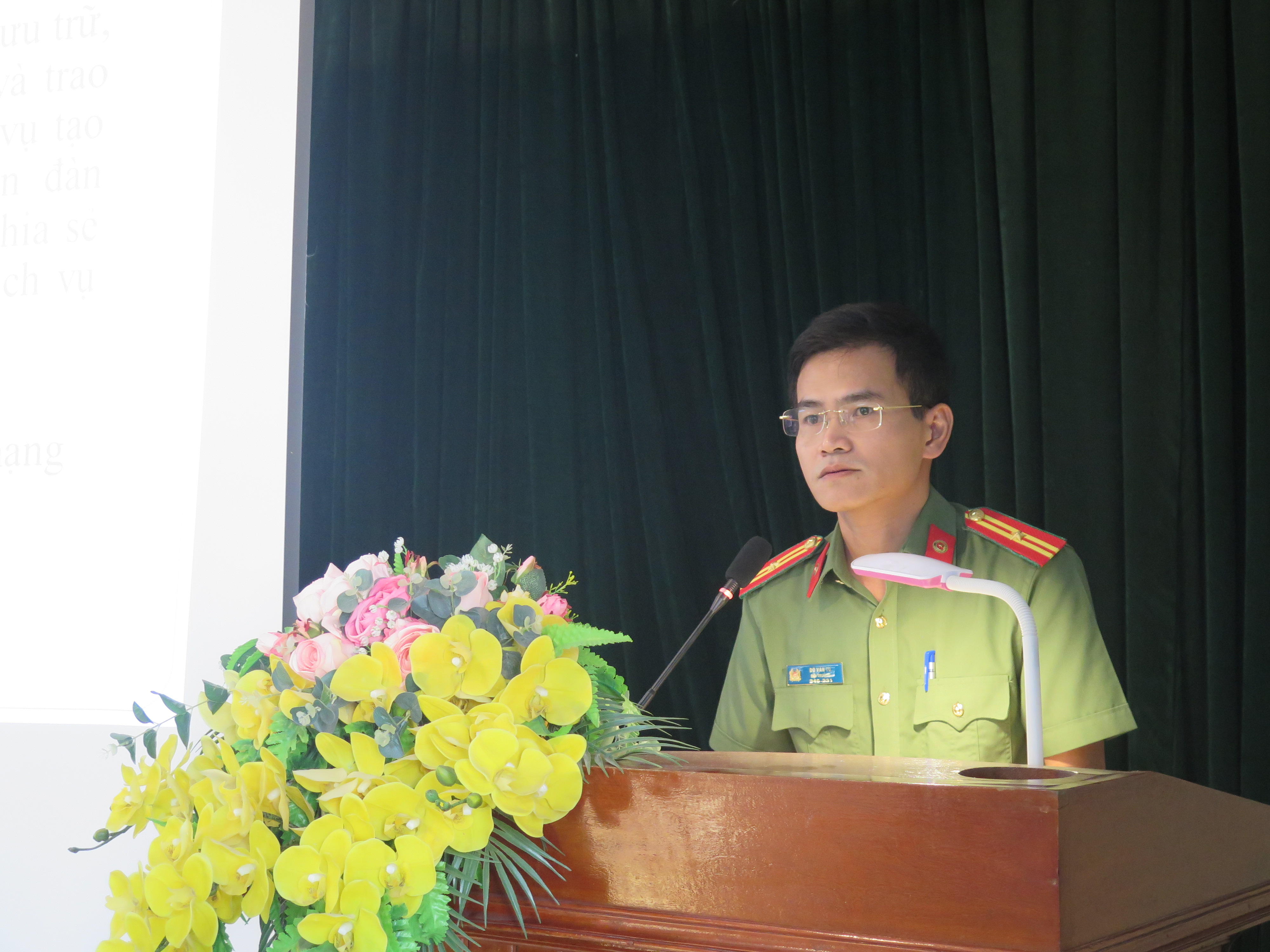 Cán bộ Phòng PA05, Công an tỉnh Hà Nam tuyên truyền cho nhân dân về việc nhận diện, đấu tranh, phản bác thông tin xấu, độc và phòng chống tội phạm sử dụng công nghệ cao lừa đảo chiếm đoạt tài sản.