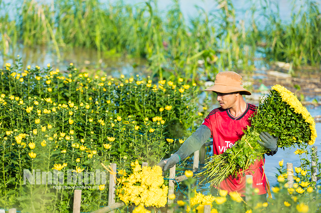 Người dân phường Thiên Trường triển khai thu hoạch hoa trước nguy cơ ngập úng