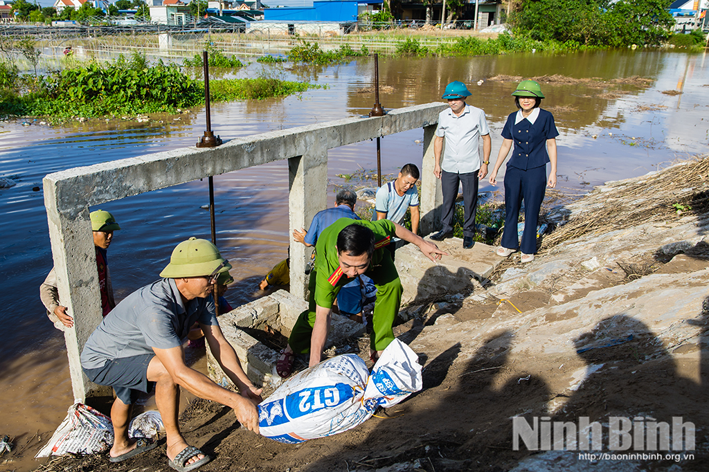 Thực hiện phương châm “4 tại chỗ”, phường đã huy động lực lượng xung kích khoảng 500 người (gồm quân sự, Đoàn thanh niên, lực lượng của các Tổ dân phố, Tổ ANTT) sẵn sàng làm nhiệm vụ cứu hộ, hộ đê. Về vật tư, phường đã chuẩn bị hàng nghìn bao tải đất cát, hoành triệt các vị trí rò rỉ, đồng thời mua sắm thêm cát, đá, cọc tre, bạt để xử lý các sự cố khẩn cấp.