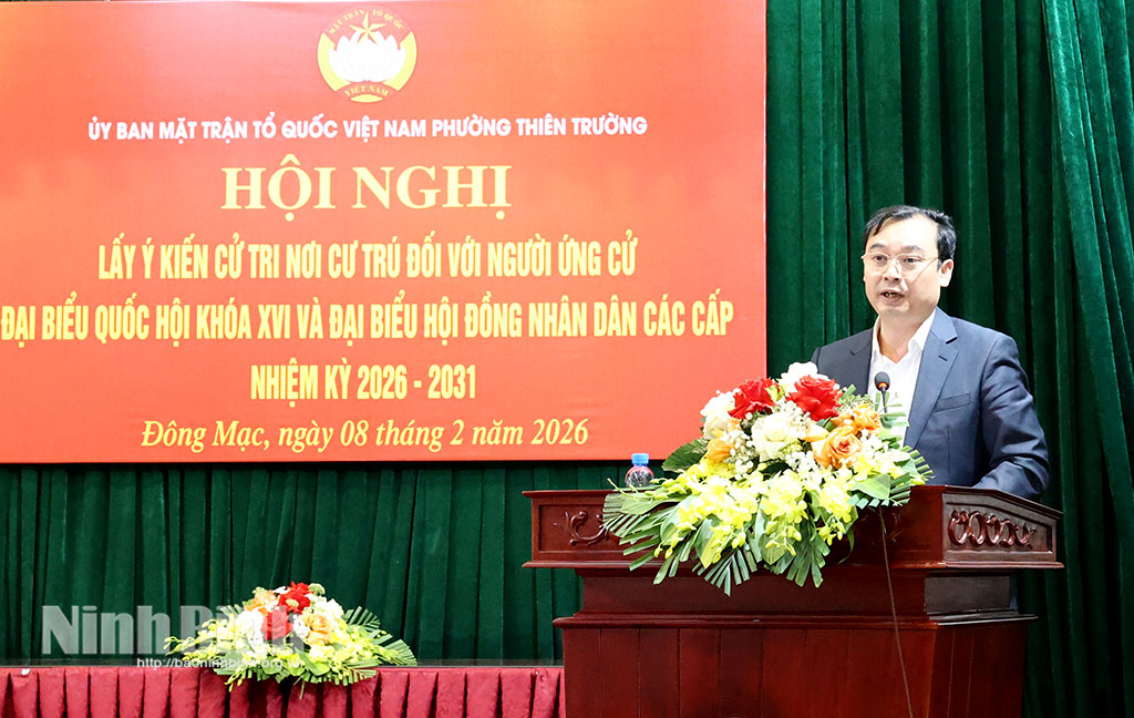 Chiều 8/2, Ban Thường trực Ủy ban MTTQ Việt Nam phường Thiên Trường tổ chức hội nghị cử tri nơi cư trú để lấy ý kiến nhận xét và tín nhiệm đối với người ứng cử đại biểu HĐND các cấp nhiệm kỳ 2026-2031 đang cư trú tại Tổ dân phố số 3, Tổ dân phố số 4 Đông Mạc.